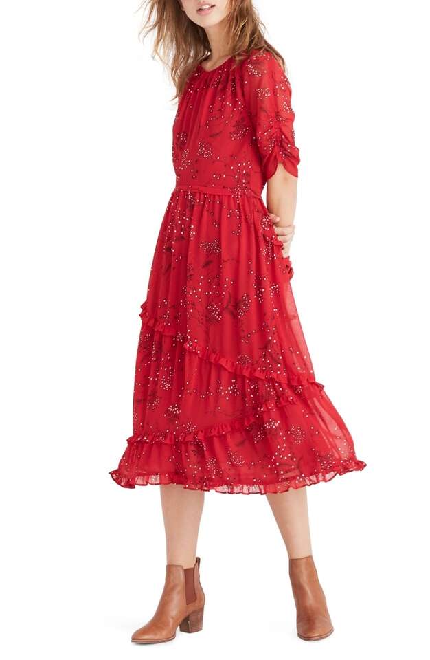 Madewell Windpoppy Ruffle Midi Dress Size 0