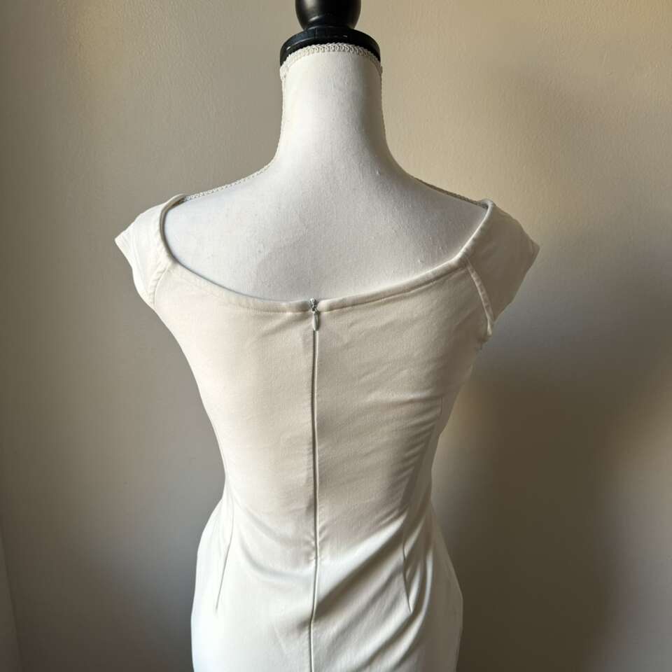 Black and Cream Body Con Dress Size Small It does have a couple marks on the back There isn’t a size tag I purchased it in Amsterdam, Netherlands It reminds me of Megan Markle