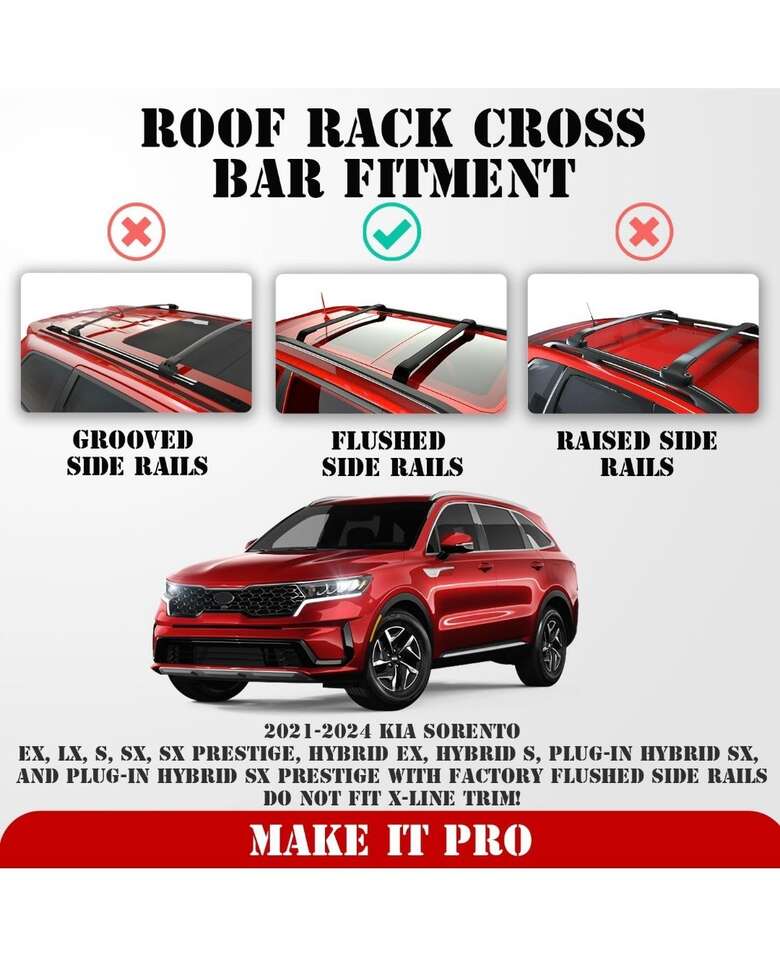 VenmoKitsPro Roof Rack Cross Bars for 2021-2024 Kia Sorento Fits Factory Flush Side Rails. Matte Black. Heavy Duty Aluminum. KP00550CB. New and unused. $75.