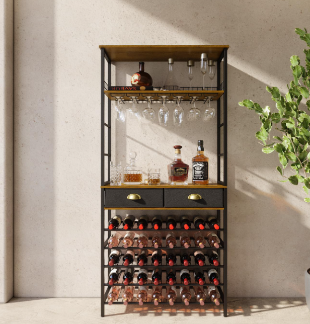 New in Box ALCARICIO Wine Rack Freestanding Floor with Wine Glasses Holder