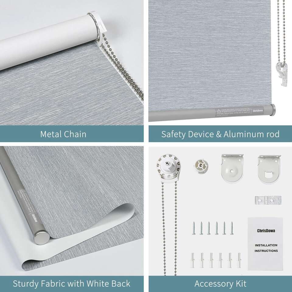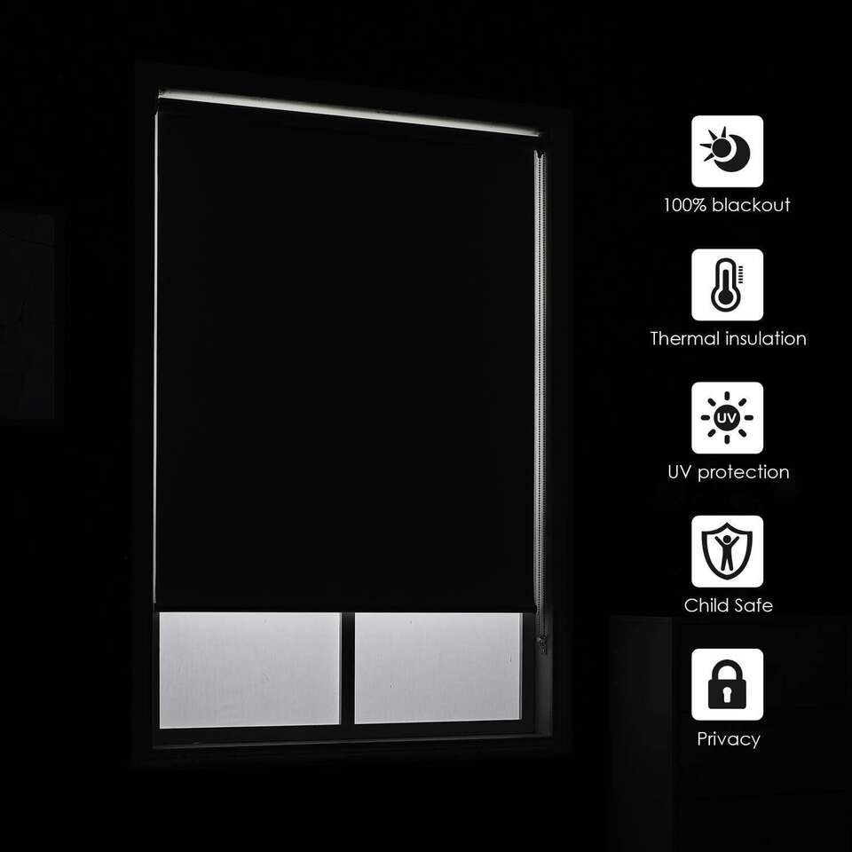 PRODUCT DETAILS: Blind Size : 70" W x 72" H Made of 100% blackout fabric coated with white backing feeling soft and smooth. CLASSIC & SAFETY DESIGN: Our shade blind features a crisp & modern look equipped with metal chain and aluminum bottom rod. To ensure safety to your family we provide a safety device to attach the chain to the wall and all the relevant safety instructions. MULTIPLE FUNCTIONS: Our office roller shade blocks out 100% sunlight and UV rays. The thermal insulated backing can reduce room heat and cold loss through window during winter and summer helping cut your energy bills. It also works well in noise reducing and privacy protection. Great for bedroom living room bathroom kitchen French door and office. MEASUREMENT: The fabric width is 1" narrower than the total roller width due to the brackets at the both ends. For inside mount window frame should have at least 2" depth and blackout roller shades will have a tiny light gap on each side. To avoid light gap consider the outside mount. For outside mount shade should be 4" - 6" wider than window frame shade length should be at least 2" longer than the window length for better coverage. EASY TO INSTALL AND MAINTAIN: Our window roller shade contains an accessory kit including metal bracket screws and install instruction for convenience. Clean with damp cloth Low Iron. If accessories are missing or broken please message us and we will resend the accessories ASAP.