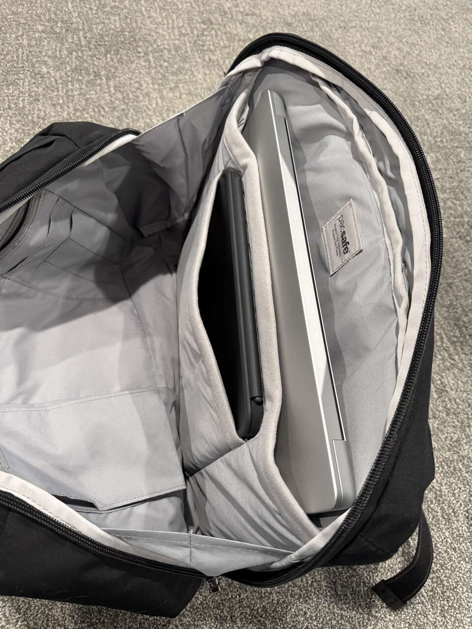 ApplePayExcellent condition only used a few times. Can fit 16 inch MacBook pro and iPad 11 Pro with keyboard in each pocket. Including 2 Pacsafe 1000 locks - 1 to secure bag and 1 to secure the compartments. https://pacsafe.com/collections/backpacks/products/metrosafe-x-anti-theft-16-inch-commuter-backpack