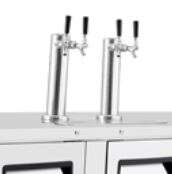 Atosa Draft Beer Cooler, 89-3/10"W x 28-1/10"D x 55-3/5"H, side-mounted self-contained refrigeration, (4) 1/2 barrel capacity (30.1 cu. ft.), (2) dual faucet towers, (3) locking solid doors, Dixell digital controller, stainless steel interior & exterior, 2" casters, R290 Hydrocarbon refrigerant, 1/5 HP, 115v/60/1-ph, 2.8 amps, NEMA 5-15P, includes: manifold & ball taps, cETLus, ETL-Sanitation