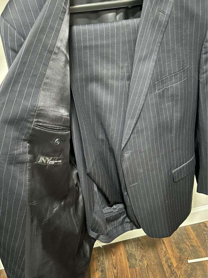 VenmoJones New York Black pinstrip 50L suit coat and size 42 waist pants. Pants are currently 32 long but can be tailored to any lenth. $100 cash/venmo in Draper