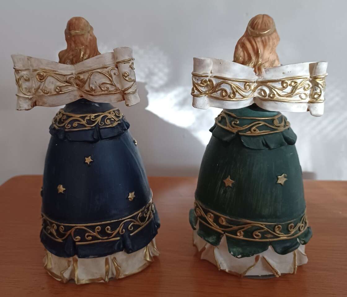 VenmoBeautiful details on this set of Angels. 5.75 inch tall each Blue praying Angel or Green Angel with Dove Great Addition to you Holiday Decor pre-owned $15 /set Porch Pickup in NSL city by Bountiful No Shipping, No Delivery