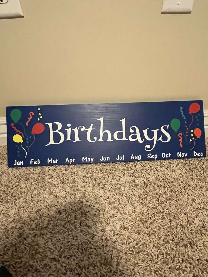 VenmoThis is a wooden Birthday Board with 30 small wooden circles to write important birthdates on. This has never been used before. The wooden circles hand from the hooks that are included.