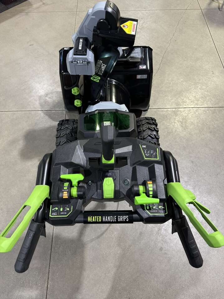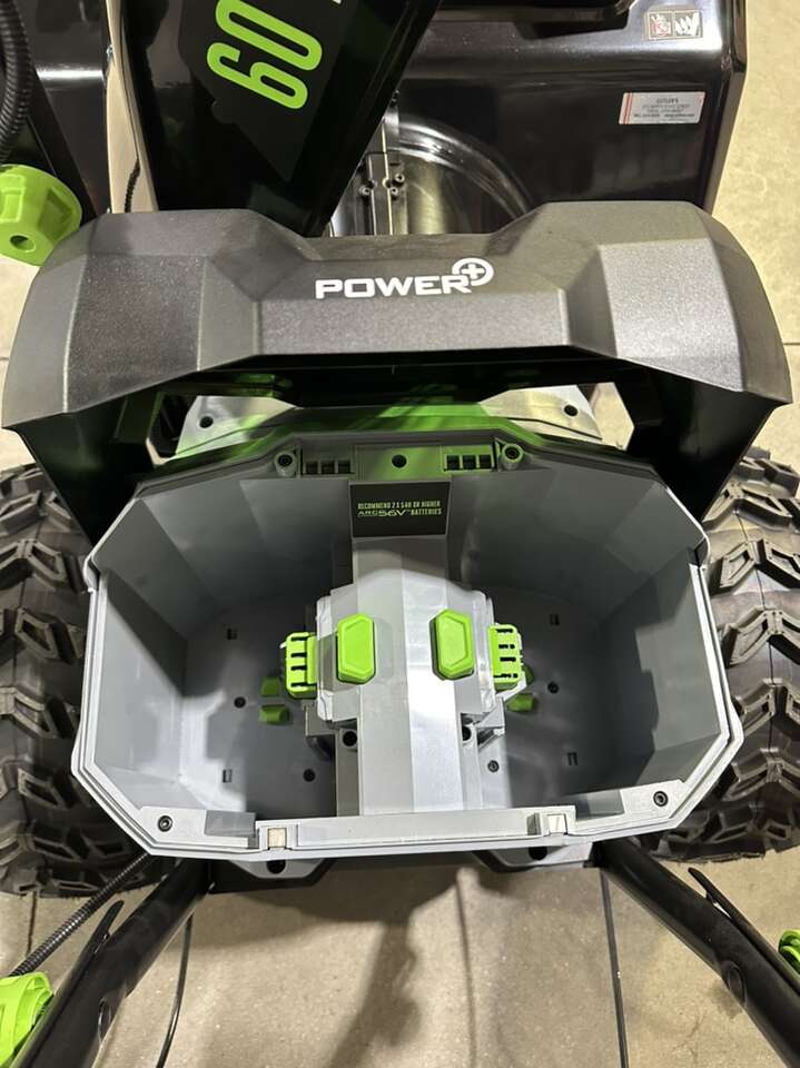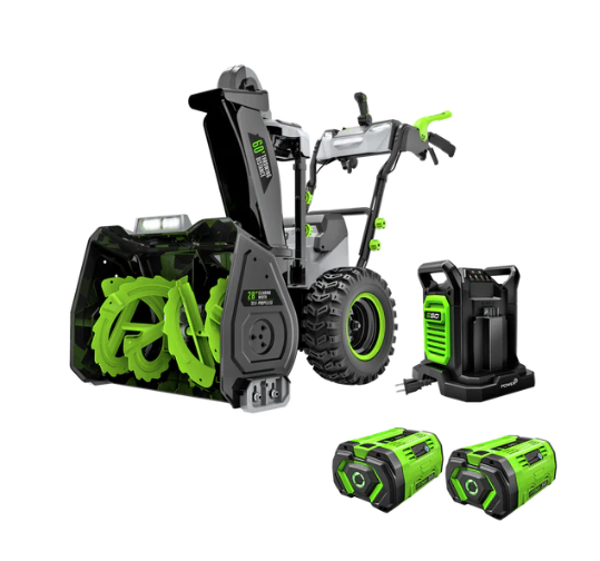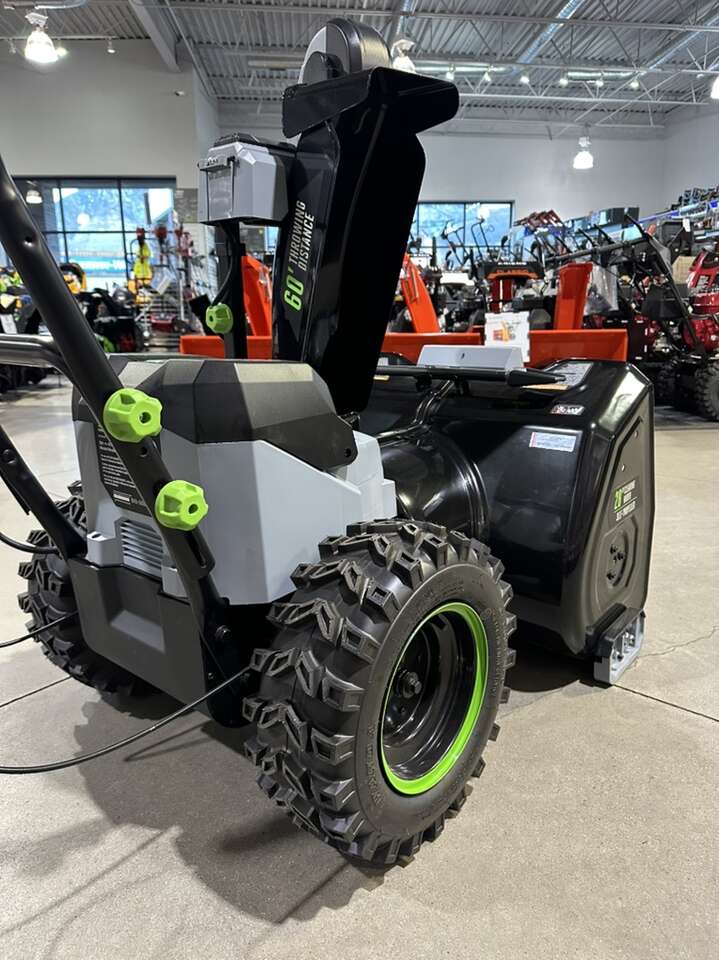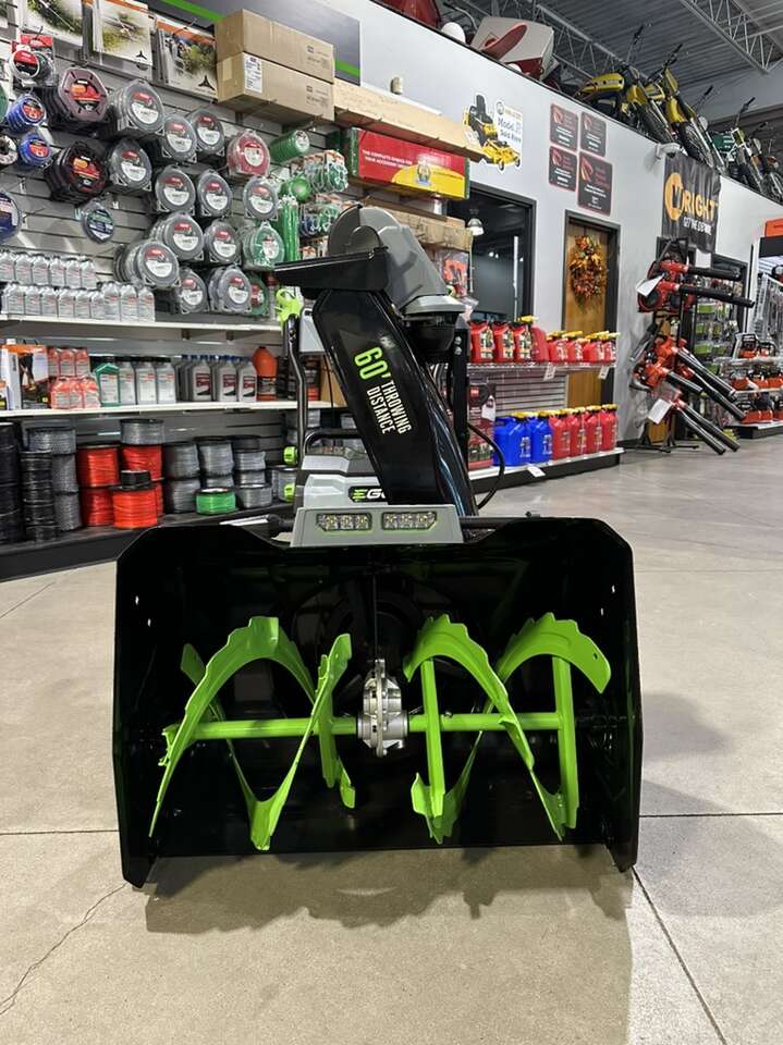This is an EGO snowblower for sale at Cutler's! This unit can be sold in a kit with batteries and a charger (Model number SNT2807) or as a bare tool (Model number SNT2800). The kit comes with 2x 12.0 Ah batteries and a Dual Port Charger.