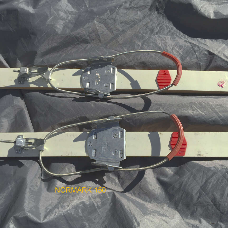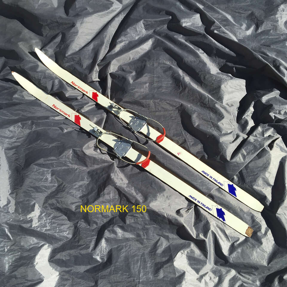 Classic wooden Normark Finland made scale base skis. 150cm. Your kid can use almost any hiking type boot to strap in. Get ‘em on that nearby golf course or take them up a canyon to learn to enjoy winter. Small chip in the base on one of the tails but won’t effect performance. $10.