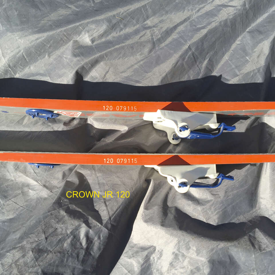 Fischer Junior Crown 120cm scale base. Same Austrian quality to start your young’uns. You can probably dig up the right boots on KSL or various thrift stores. Good condition. $12.