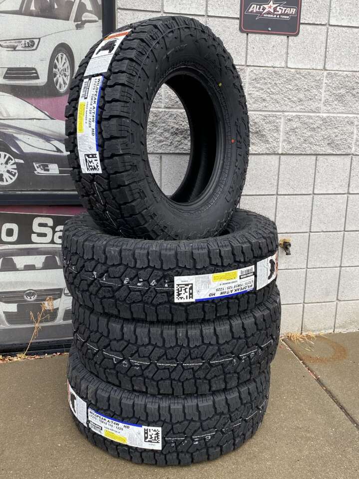 ApplePayBrand new, these come with a 60k mile warranty and a Rod Hazard Warranty or the first 3/32 of tread life
