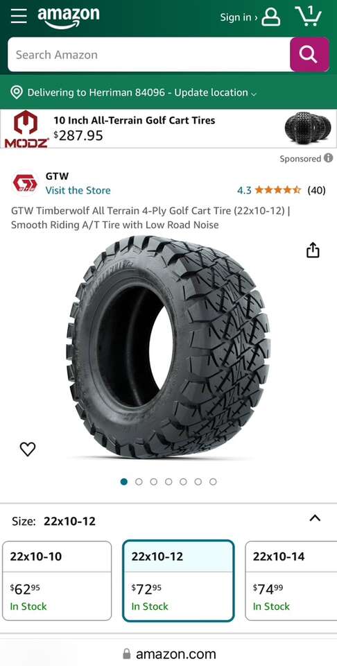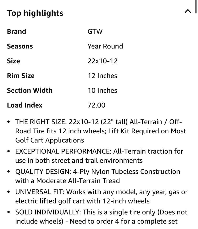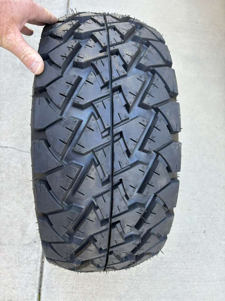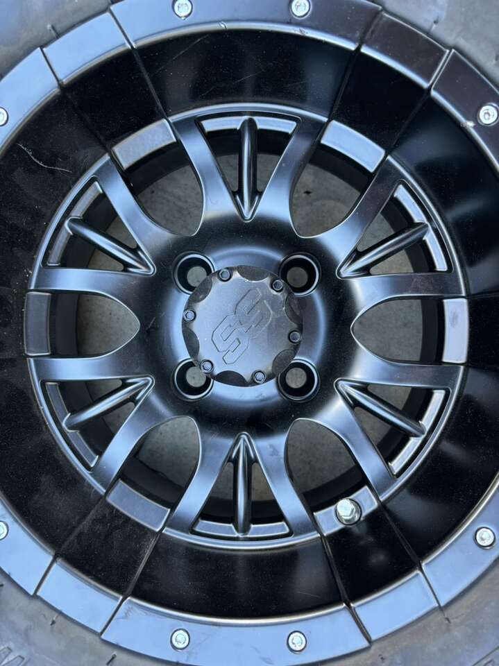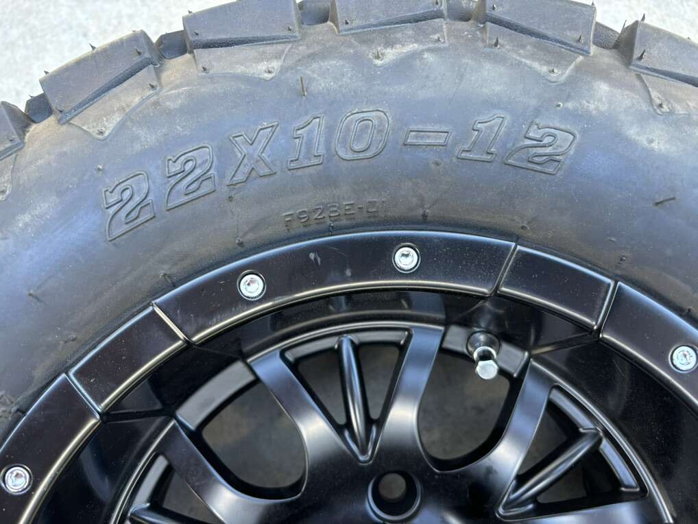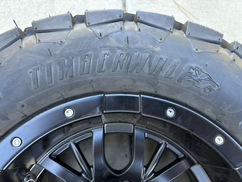 Description- 22X10-12 TIMBERWOLF A/T oversized golf cart tire mounted on 4-lug SS mag wheel. ONLY ONE AVAILABLE. See photos for more product information and specifications.