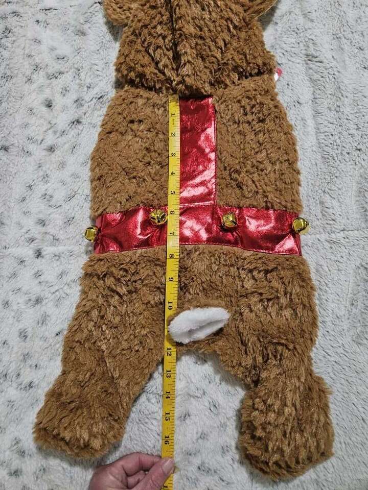 VenmoThis raindeer outfit is new with tags, size small. It has the velco around the neck and belly. The bells are real on the back. It will keep your little one warm this winter season. Please double check the measuments as this runs big. All my items comes from a smoke free home. Any questions please feel free to contact me. Dont forget to check out my other listings for more dog items. There are a bunch listed in different sizes :)