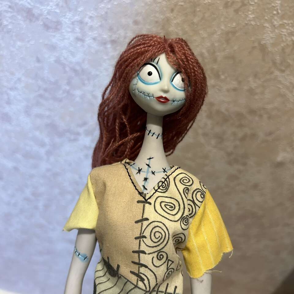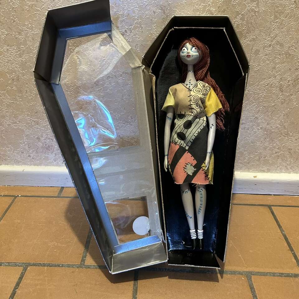 Sally is in Pristine mint condition. Her dress is crisp & clean, her surfaces are in Mint condition and her hair is perfect with no split ends. She is 12” tall. No stains, rips, odors and zero defects except for the box being in poor condition and a little green bottle that is missing so there is no sound, but other than that she’s perfect.