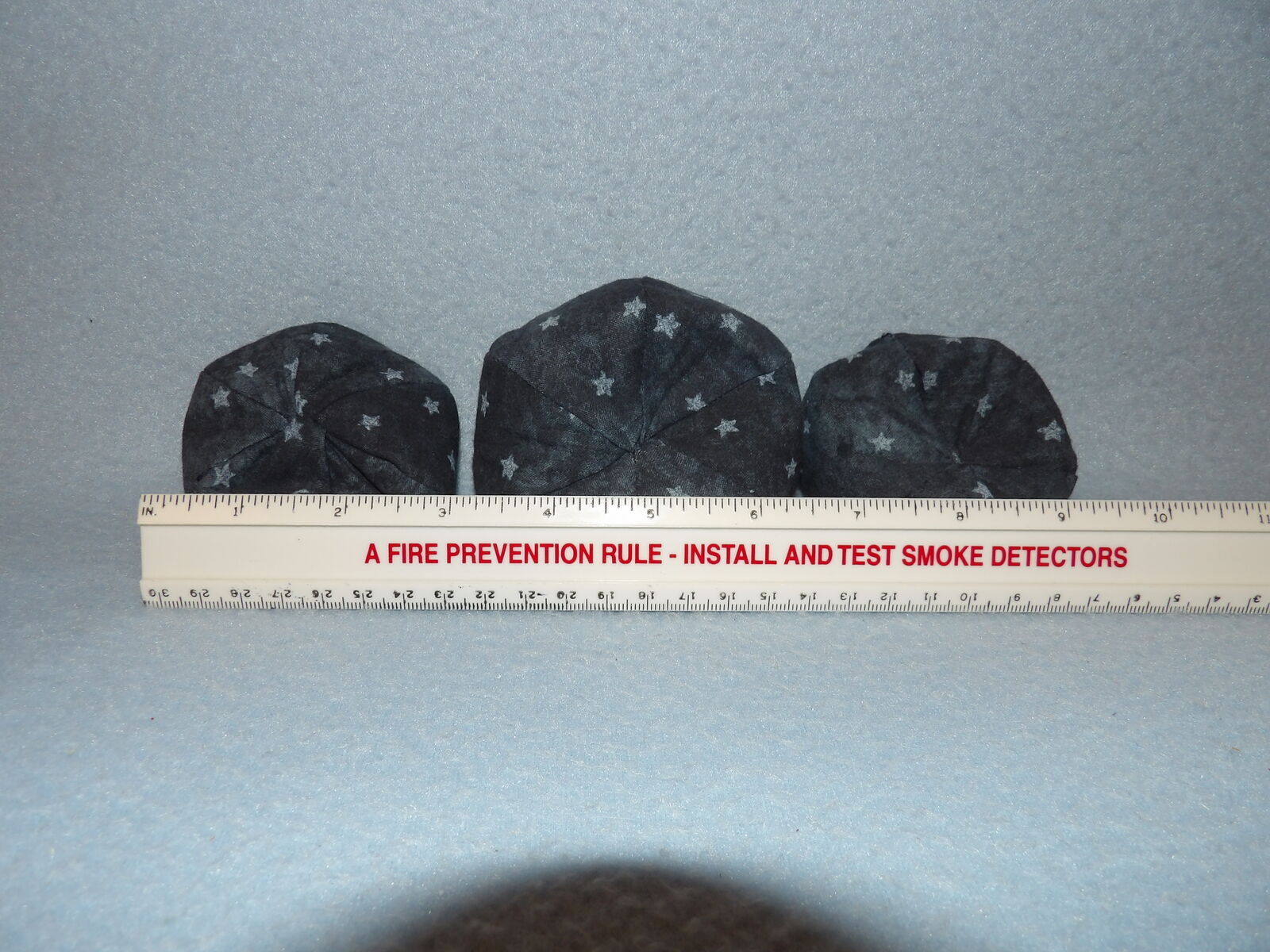 Large Navy Blue is 3.5" round. Two small Navy Blue are 3" round.