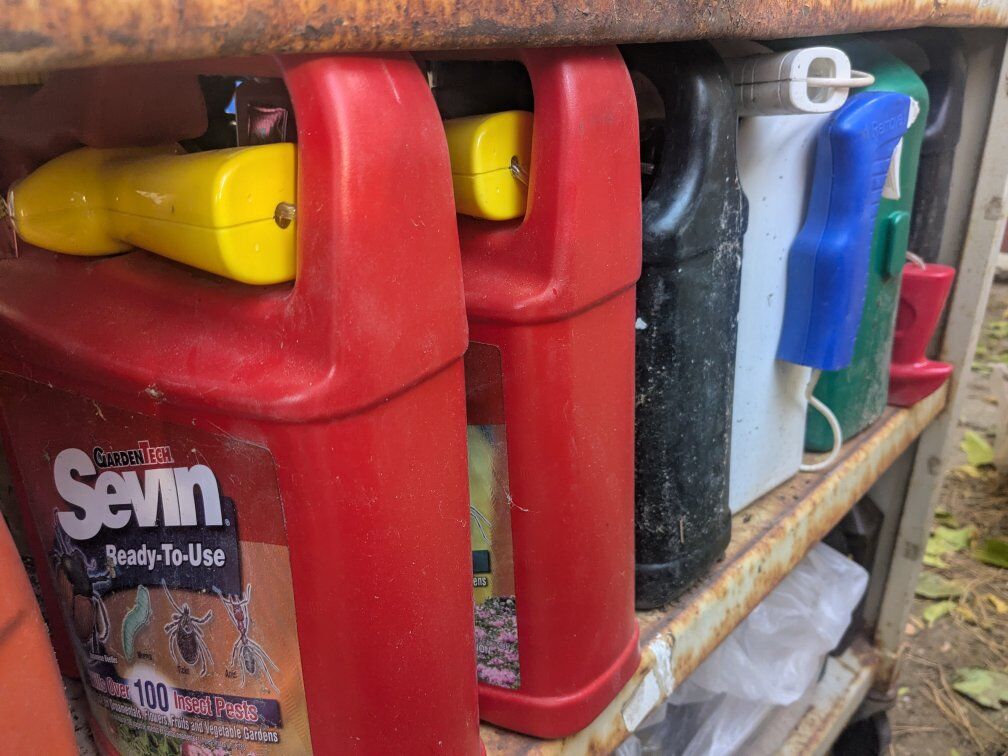 3x gallon jugs insecticide for around home 14x gallon jugs Weed and grass killer/ weed killer for lawns.