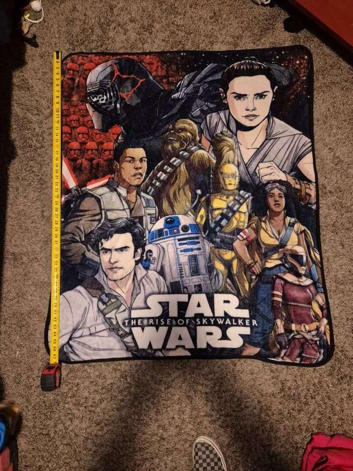 Are you a starwars fan? Need a blanket? If yes to both questions this is for you! Dimensions 40 x 58 It's on the smaller side. Didn't ever use. No rips or tears, good condition.