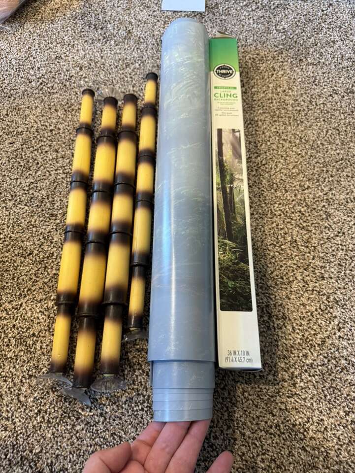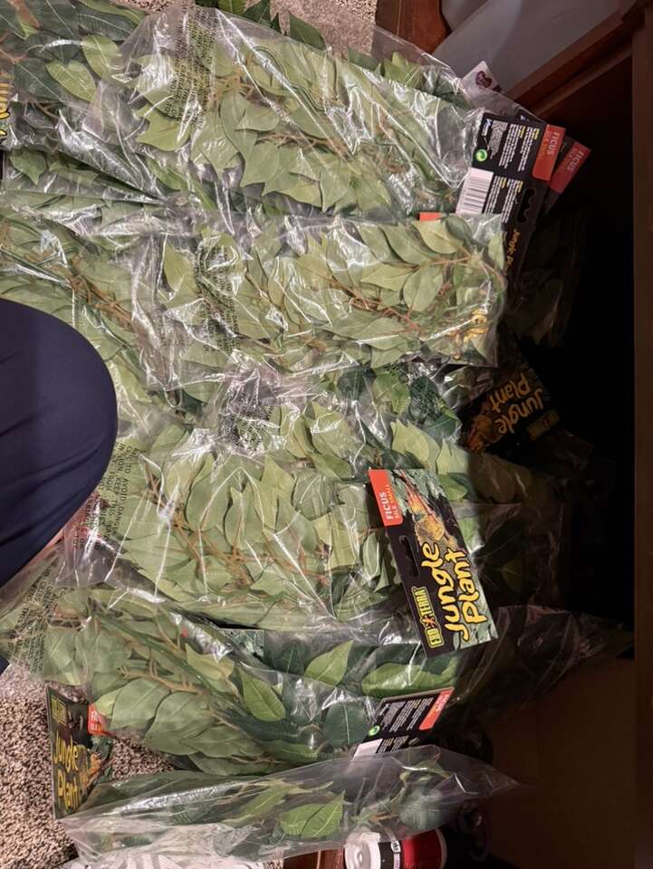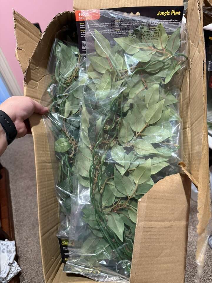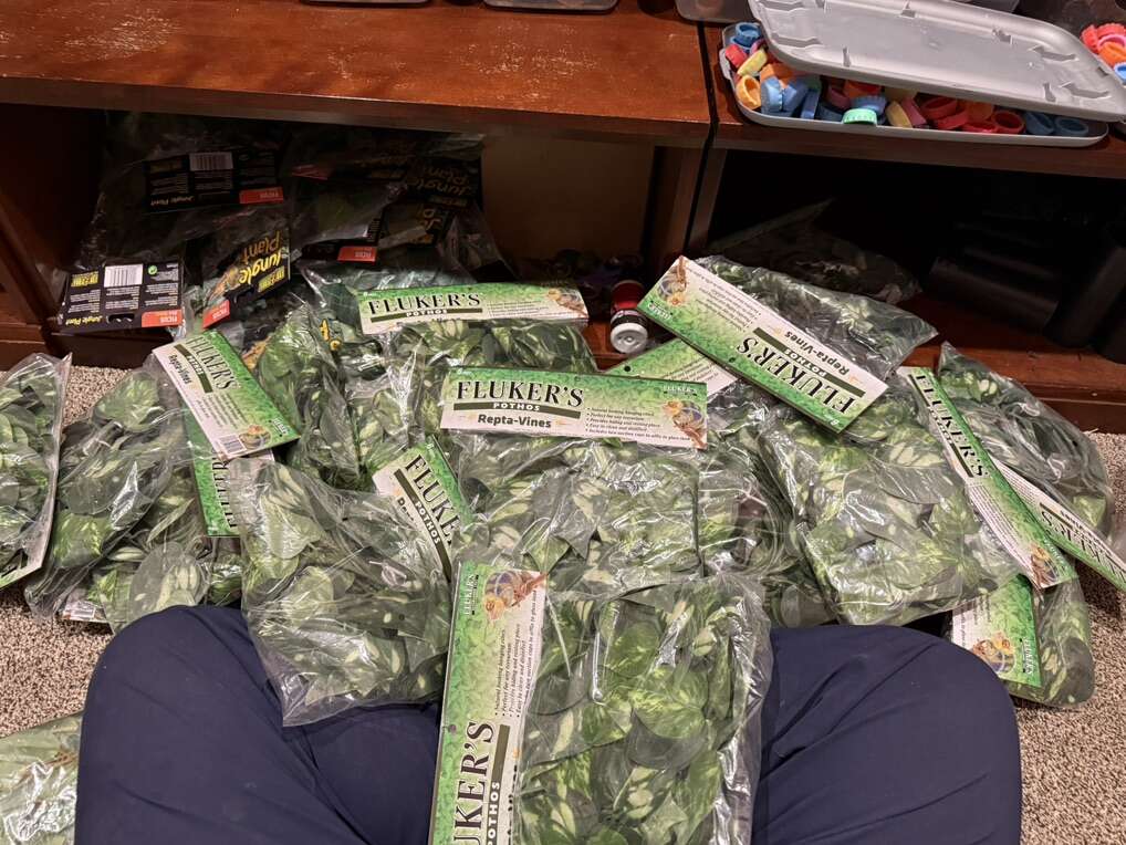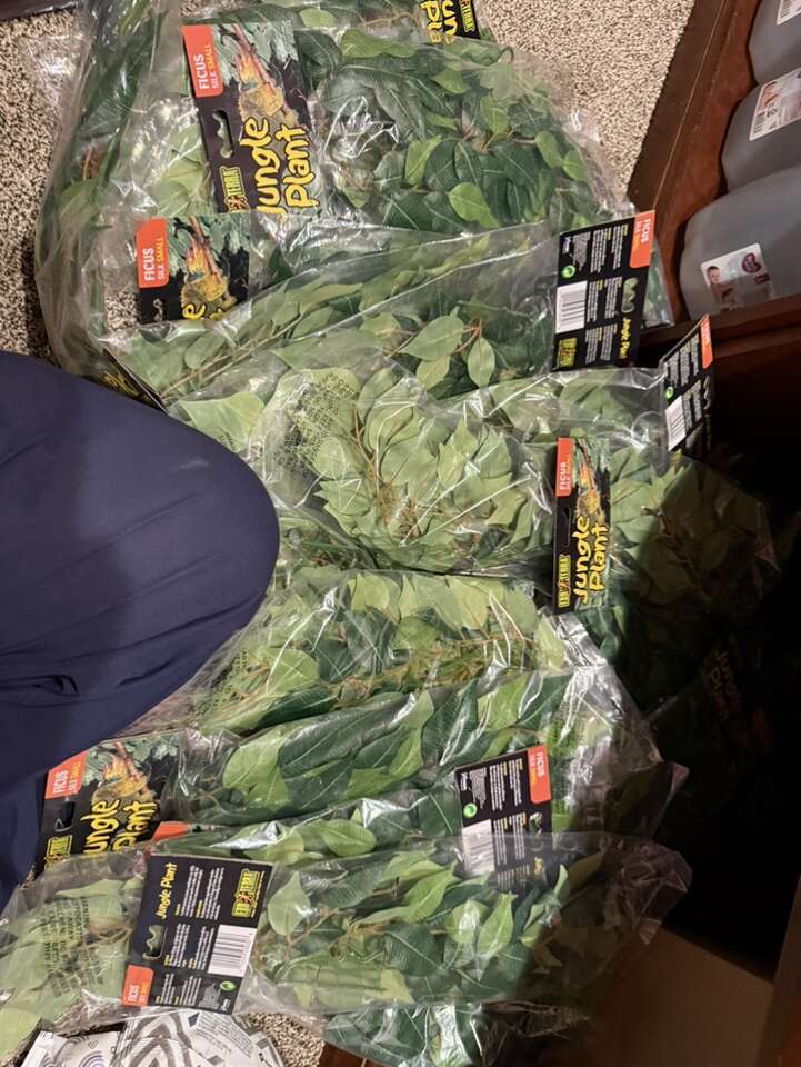 Small ficus - $6 Large ficus - $10 Pathos - $10 Bamboo poles - $10 for 2 Aqueon 10 gallon tanks - $15 Decoration kit = $12 Moss vine = $10 Skull cave = $12 Log hide = $12 Cork = $4 Bridge = $5 Alligator head = $10 Hides (tons of colors) = $5-15 Feeding ledges with lounging ledge (lots of colors) = $5-15