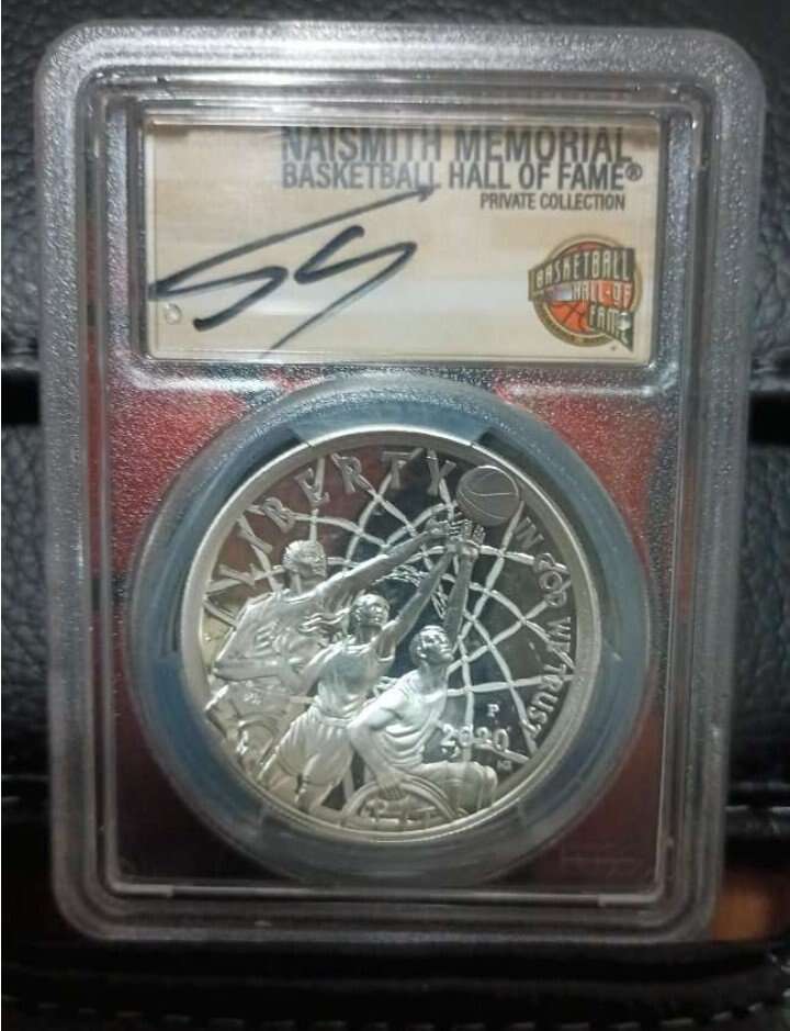 This is a special coin hand signed by Shaq the day he was put in the Hall of Fame. This Shaq Autograph coin is among the very few to be in the Naismith Memorial Private Collection. This 2020 1oz pure silver convex and concave rounded basketball coin is awesome alone and the 2nd time a curved coin was made by US Mint Graded a perfect 70 and signed just tops it off and will add value to it forever. I'm only selling one to the lucky collector interested. Price is the cheapest price found anywhere and the others I seen were sold by me in 2020 to the seller's Thanks, Zach