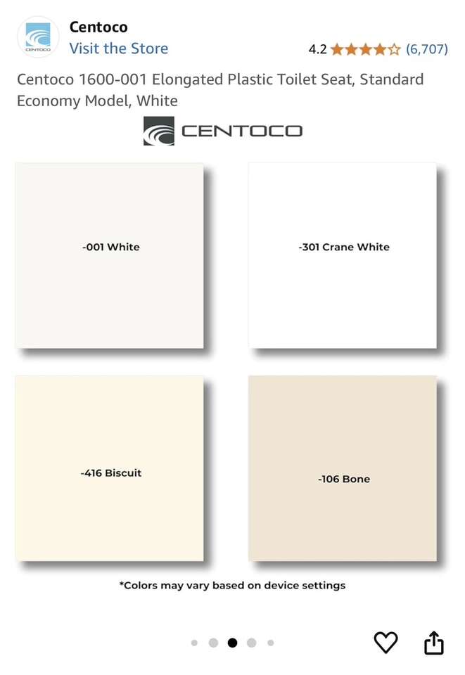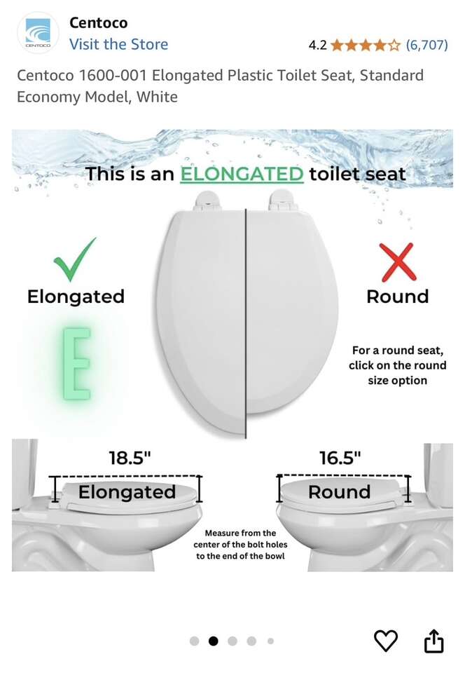 Centoco 1600-001 elongated plastic toilet seat in white. New condition still in original packaging. Text preferred or leave a voicemail and I’ll get back to you.
