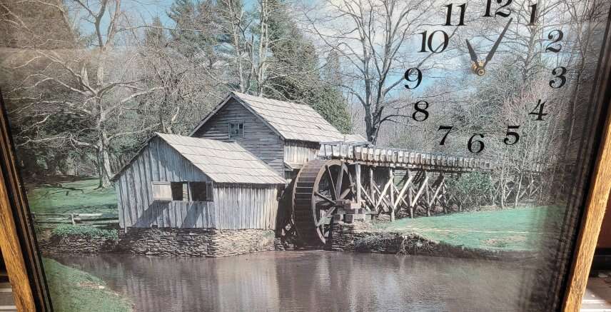 Mabry Mill Wooden Quartz Battery Powered Wall Clock 24"×19"