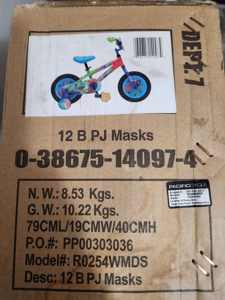 New 12 B P J Masks 0- 38675 14097 - 4. Still in box. Box has a little damage but bike is in perfect condition.