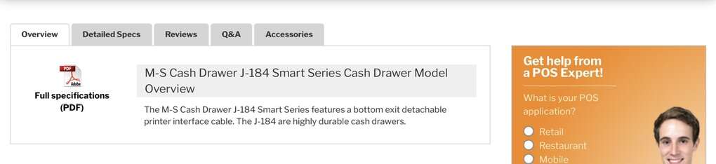 ApplePayM-S Cash Drawer J-184 Smart Series Cash Drawer Model Overview The M-S Cash Drawer J-184 Smart Series features a bottom exit detachable printer interface cable. The J-184 are highly durable cash