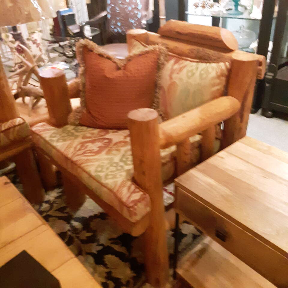 VenmoThis is a fabulous log furniture set including sofa, chair, bench and end table, Including BEAUTIFULLY upholstered cushions, with pillows. Entire set is in excellent condition. Original price was $6000. Price is $2495