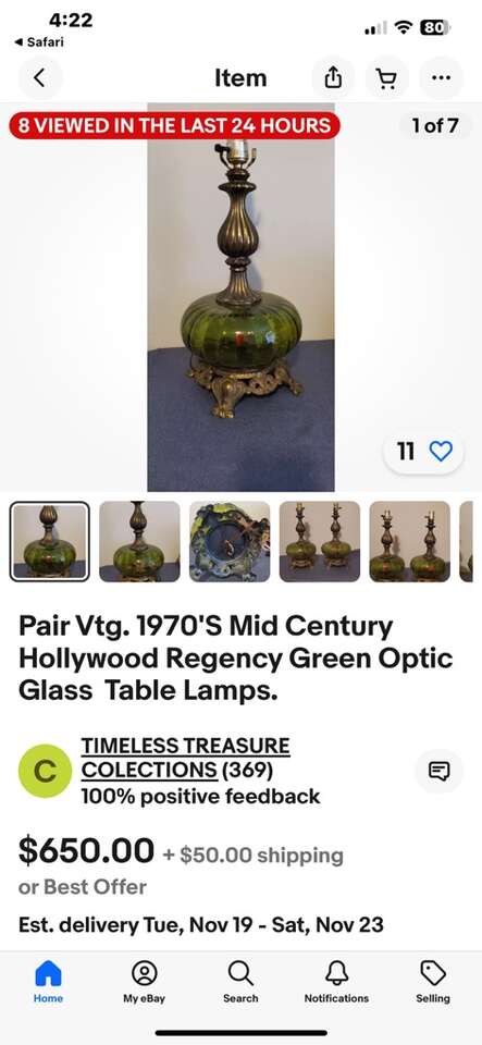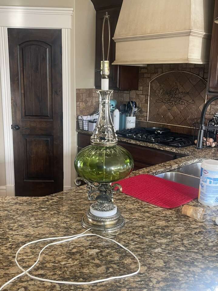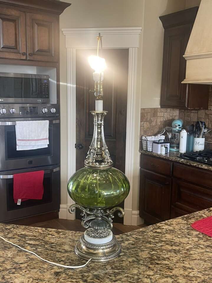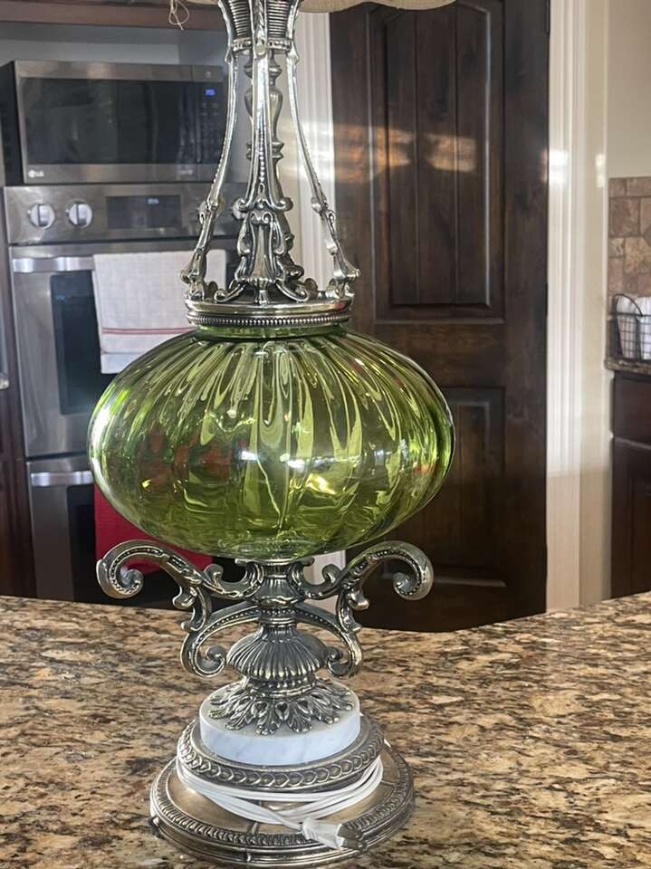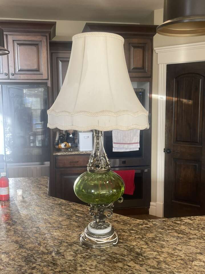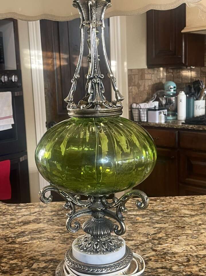Up for sale are a working pair of Vintage Hollywood Regencey green optic glass table lamps. No emails, deliveries, codes, or calls. Text or message only. Serious inquiries only. Asking $300 for the pair. Cash only. 801-380-6256 Thanks Hank.