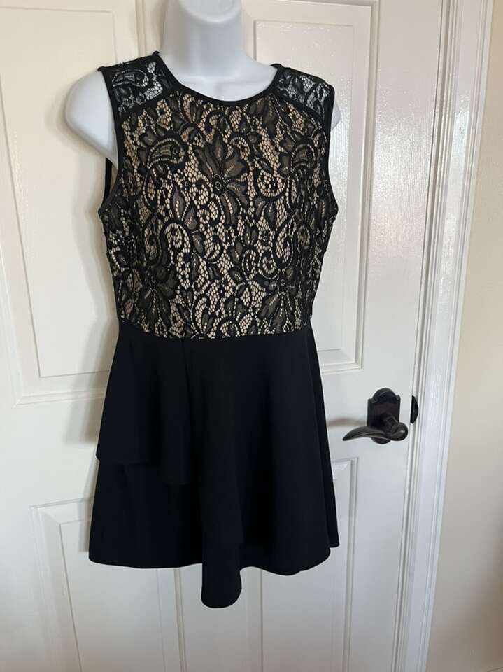 Women’s sweet storm fancy dress size small black lace and nude underlay.