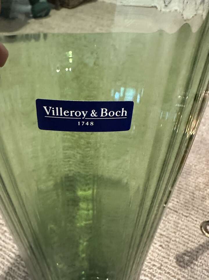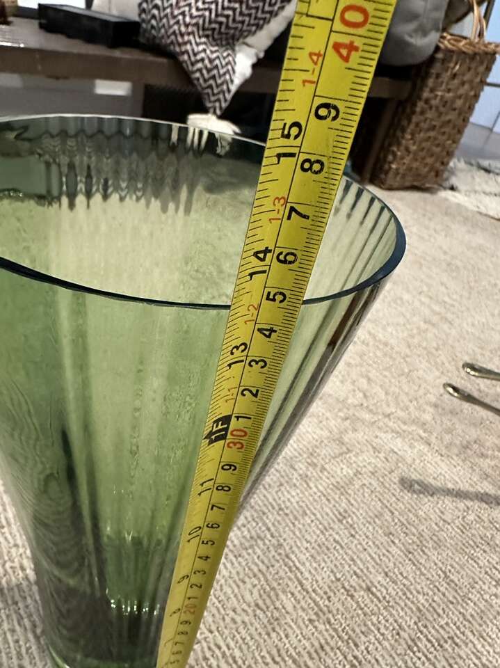 Beautiful green crystal tall vase. Great for a dynamic center piece