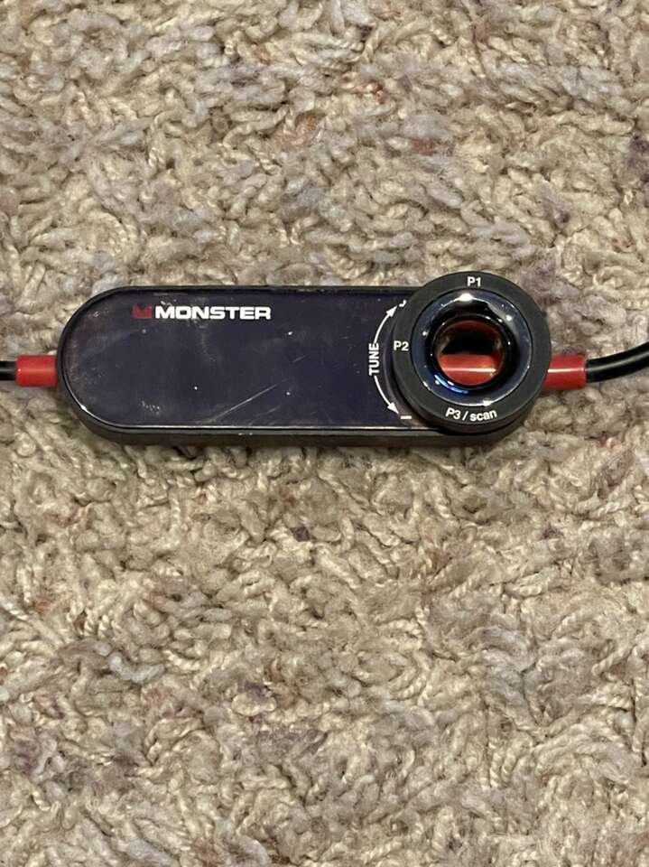 Monster FM Transmitter is in great working condition. Transmitter uses car adaptor and has the 30pin cord that works for early model iPods and iPhones. Feel free to call or text(preferred), if you have any question. If I don’t answer please leave a message and I will get back to you ASAP.