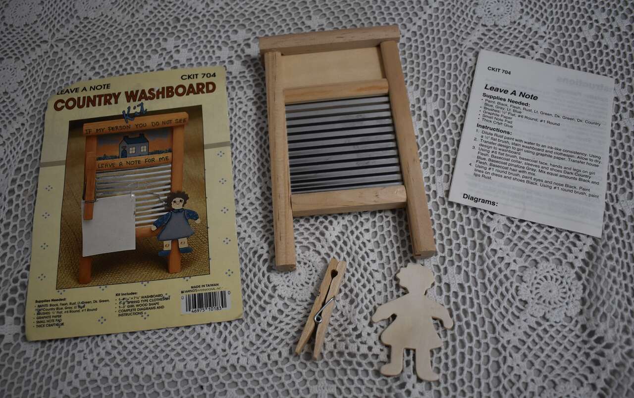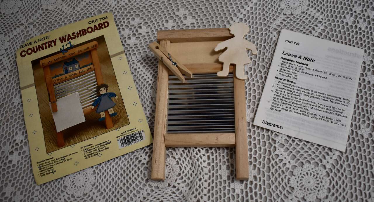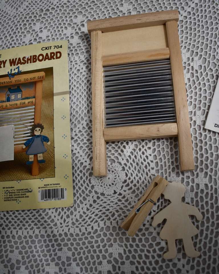 IT MEASURES…Approx. 7 Inches Long X 4 1/8 Inches Wide. The little girl wooden piece measures,,, almost 3 inches and the clothespin measures…2 1/2 inches long