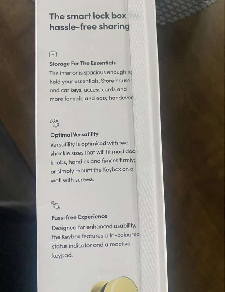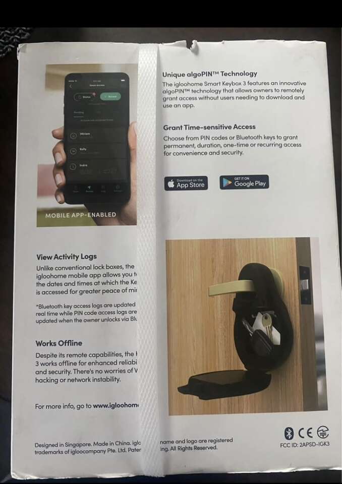 VenmoNew never been open. Keep your keys safe and secure with the igloohome Smart Keybox 3. This portable lock box is perfect for storing your keys while you're away from home. The pin tumbler lock mechanism and keypad lock type provide added security, while the water-resistant and weather-resistant features make it suitable for outdoor use.The large size of the igloohome Keybox 3 allows for multiple keys to be stored and the aluminum and metal material make it robust. The mobile app-enabled feature allows for easy access and sharing of keys with others.