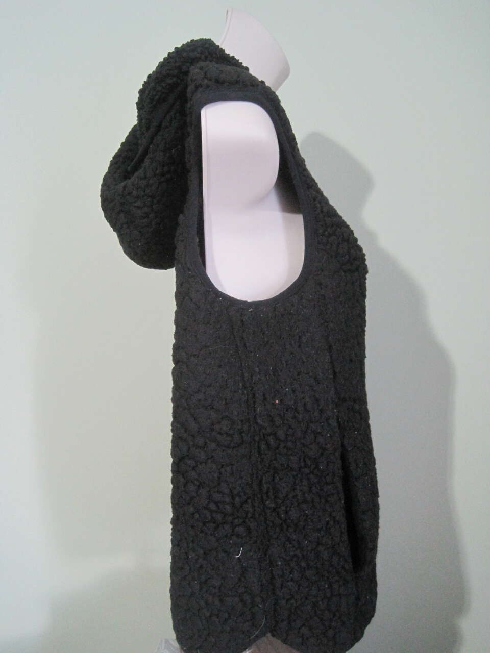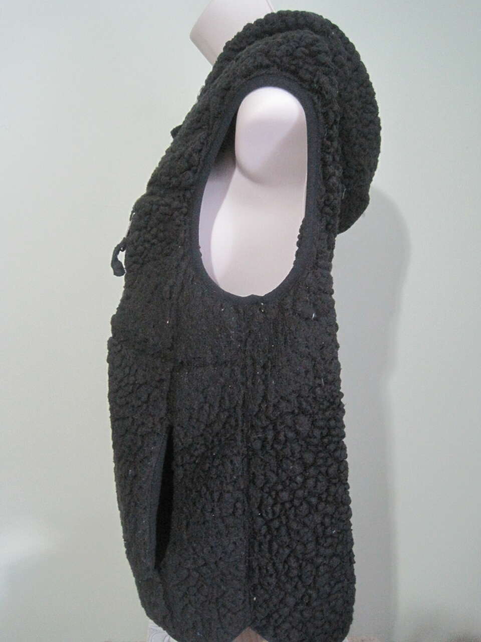 Elevate your winter wardrobe with this vintage black sherpa shearing hooded vest by Weatherproof. The vest is made with polyester outer shell material and lined with polyester, featuring a solid pattern with zip closure and sleeveless design. The vest is perfect for travel, party/cocktail, and casual occasions. This regular-fit vest comes in size small and is insulated with wool, making it perfect for winter, fall, and spring seasons. The vest is accentuated with a zipper and is handmade in China. Add this stylish vest to your wardrobe today and stay cozy and fashionable no matter the weather.