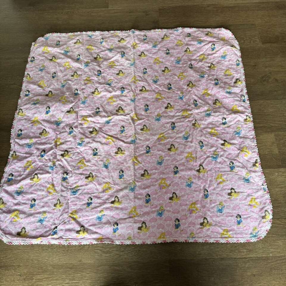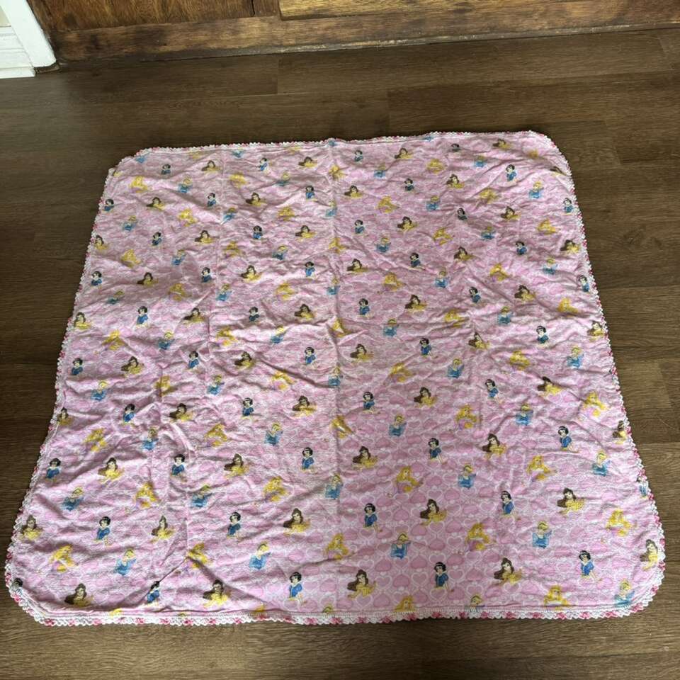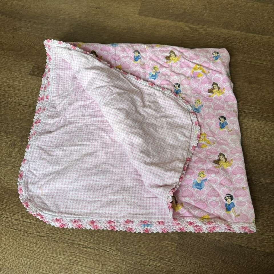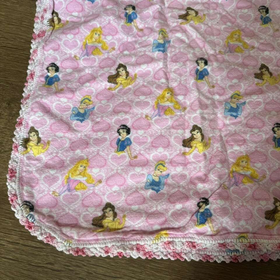 Disney Princess Baby Blanket Hearts Belle Cinderella Snow White Sleeping Beauty Crocheted Edge Does have some piling on the fabric and a small stain (see photos)