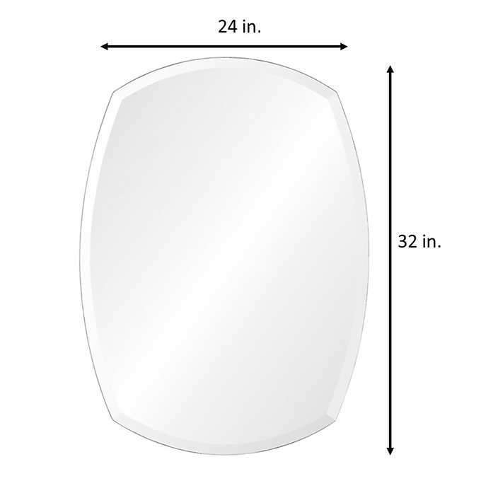 This contemporary mirror has a unique shape that would have a great designer effect in a bathroom. It has beveled and polished edges.