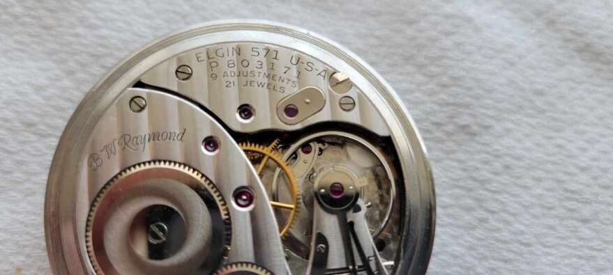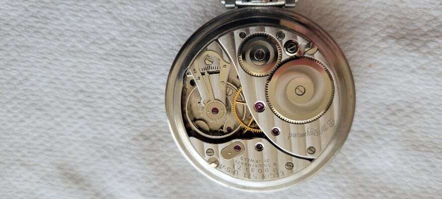 I’m selling this nice used vintage 16 size Elgin, 21 jewel railroad pocket watch. The watch is cased in an Elgin marked stainless steel case. This is a model 571 made circa 1953. The watch has been carried, but still a descent example of an Elgin railroad pocket watch. The watch is in running condition and keeps time. The watch was recently cleaned.