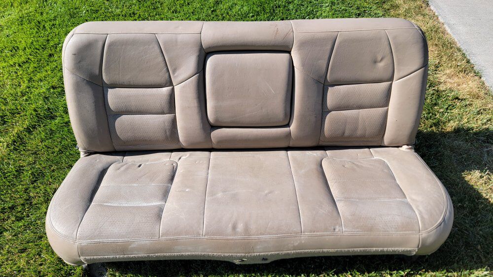 Rear tan seat from 2000 or 2001 F350 leather good condition should fit 99-07. Dusty from garage but is clean when wiped off