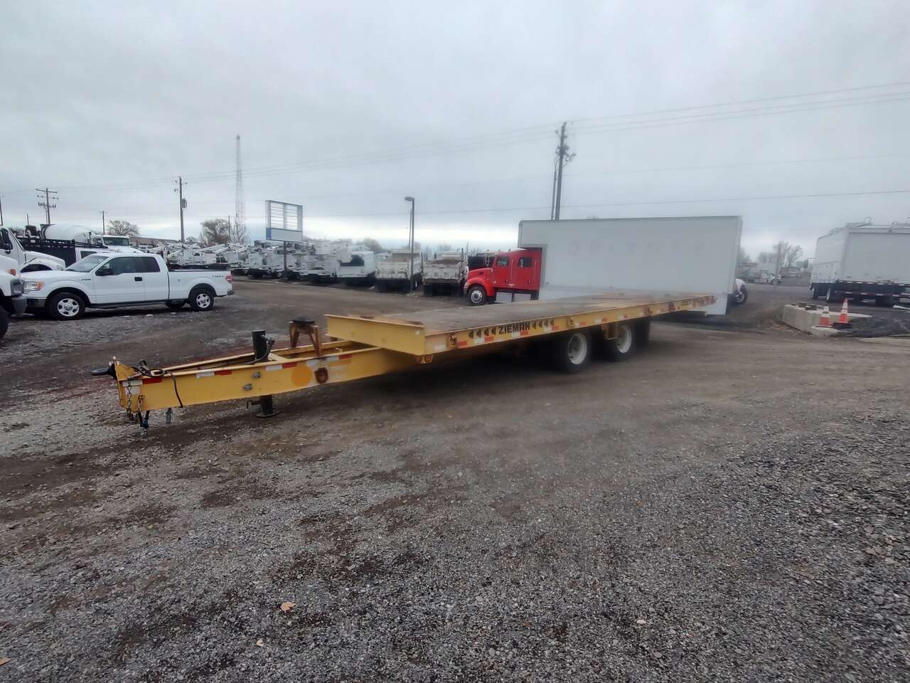 2006 Zieman 40,000GVW tilt Deck Equipment Trailer, near new brakes, hardwood deck, 102" wide, 23 foot long deck, good 17.5" tires, former municipal unit 208-734-3434