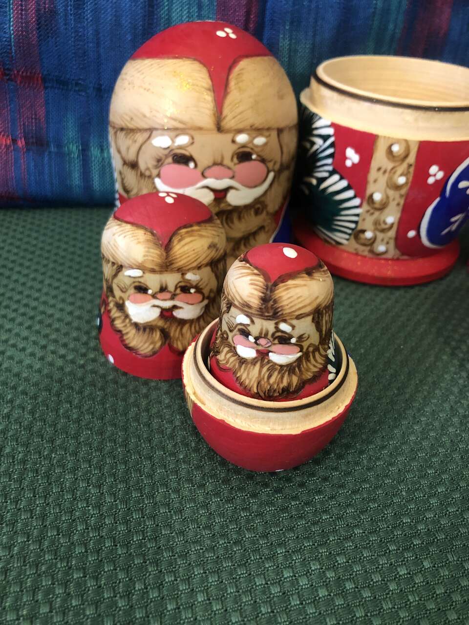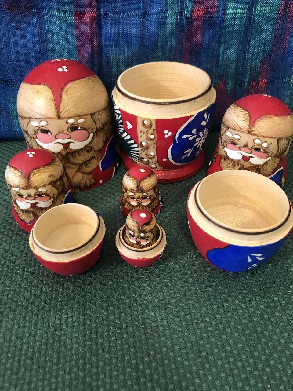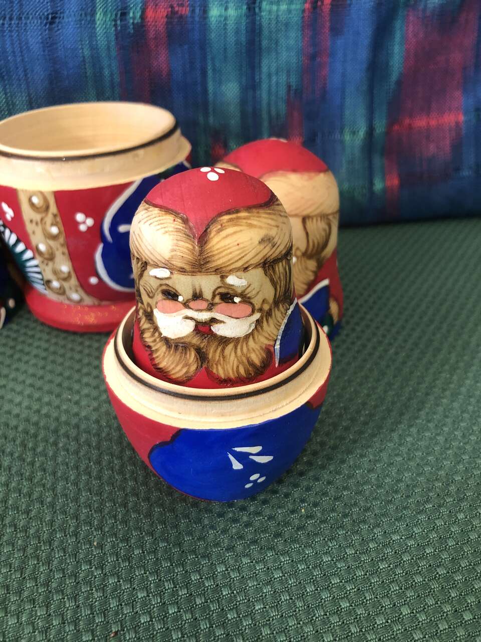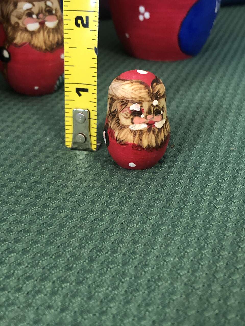VenmoJust look at the detail! There are 5 dolls in total. The smallest one measuring just over 1". Once all dolls are within each other, it measures only 6.5" tall and 3.5" wide. From the red cheeks, round nose, and jolly expressions, it's a perfect representation of Santa in wood.
