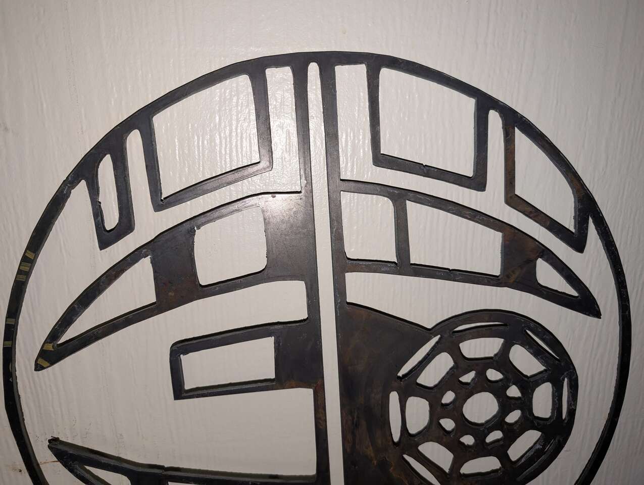 PayPalIlluminate your space with a touch of celestial charm using the 18-inch round Death Star laser table cut out. Crafted with precision, this ornamental piece from the renowned brand Star boasts an intricate design that captures the essence of the iconic battle station from the Star Wars universe. Ideal for fans and collectors alike, this round-shaped décor accent adds a unique and futuristic flair to any room. Its notable width ensures it stands out as a centerpiece or a standout piece on your desk or shelf, bringing a bit of the final frontier into your daily environment. 50 or best offer. Will ship world wide.
