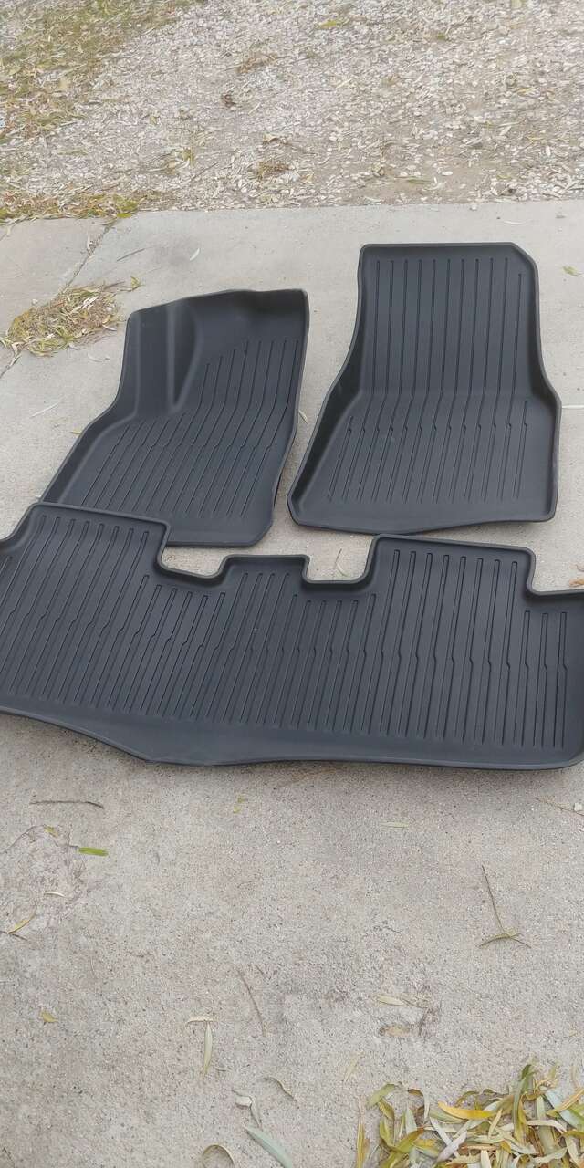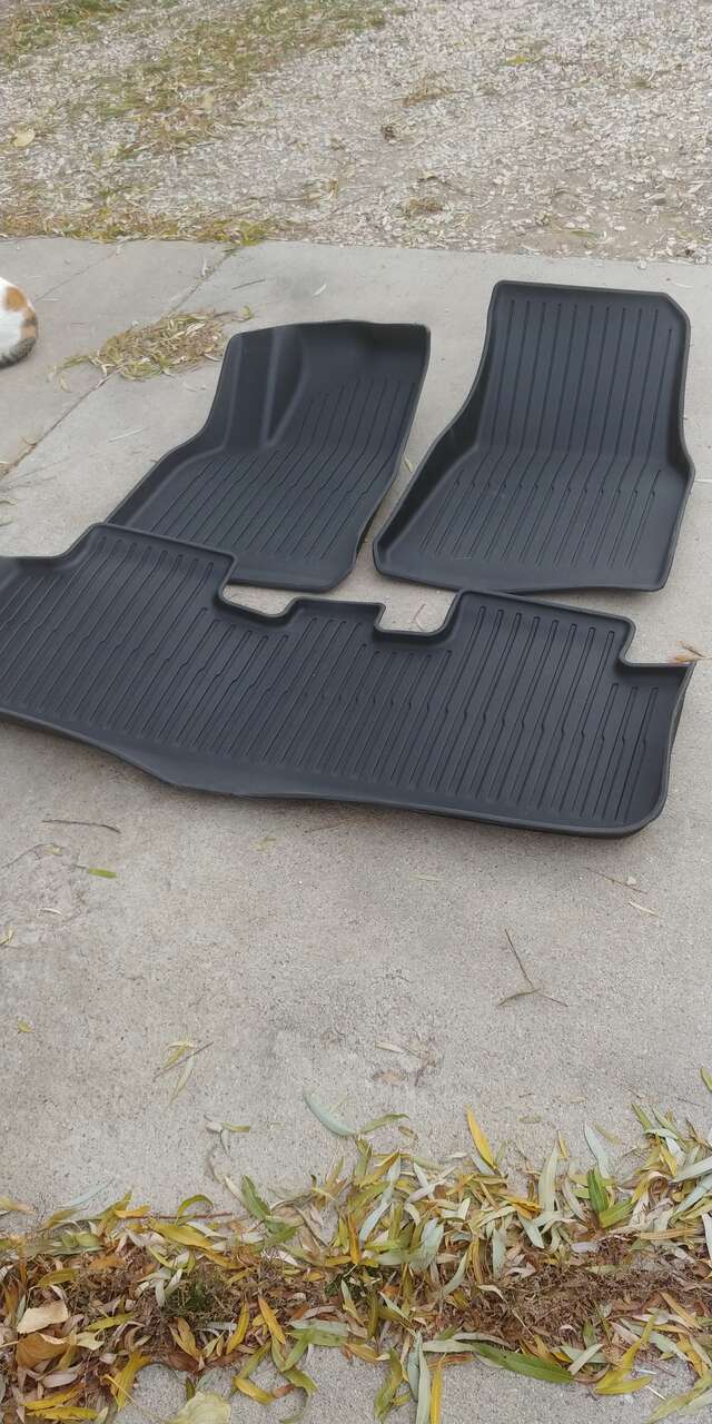 VenmoGoogle Lens says fits Tesla models 3 or Y. I'm sure they will fit many other vehicles. Just not mine. New never used. $50 for the set. Size front L 18.5 at top 22 bottom. R 16.25 top 22 bottom. About 32 long. Rear 52 w 21 long, cupped about 3.5 high. Call or text with any questions. Great for winter.