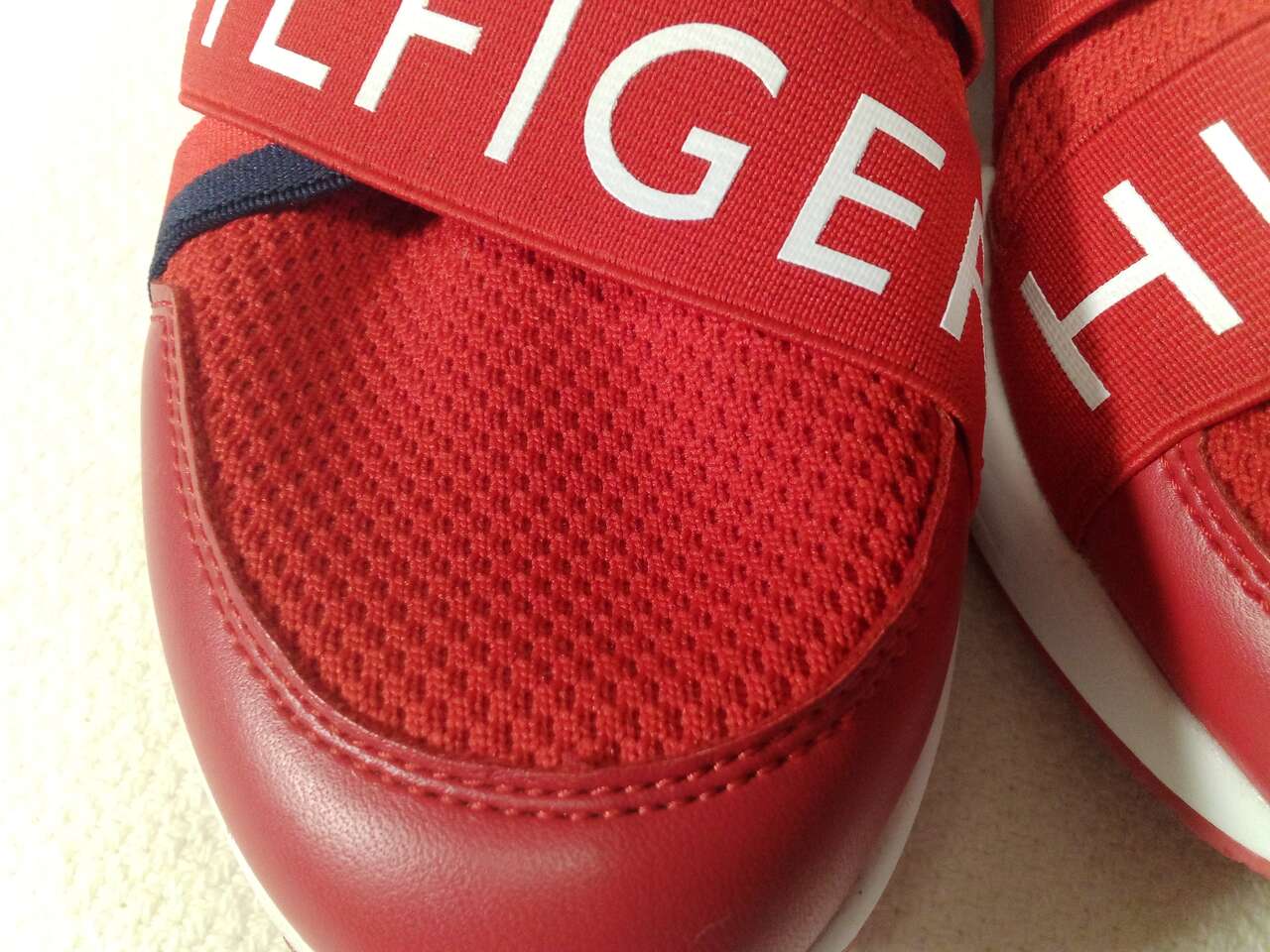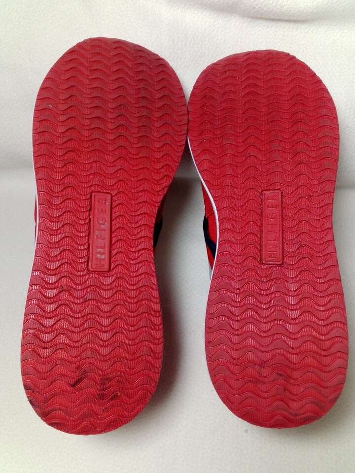 Elevate your casual look with these Tommy Hilfiger slip-on sneakers in a bold red color. Designed for men, these TWRINARI-T sneakers are perfect for adding a pop of color to any outfit. The upper is made from man-made material with a rubber outsole for durability and slip-on closure for easy wear. The cushioned and lightweight design makes them comfortable for all-day wear. The insole is made from foam and the lining from synthetic material. These sneakers are perfect for any casual occasion and are available in US shoe size 8.5. Add these stylish sneakers to your collection today!