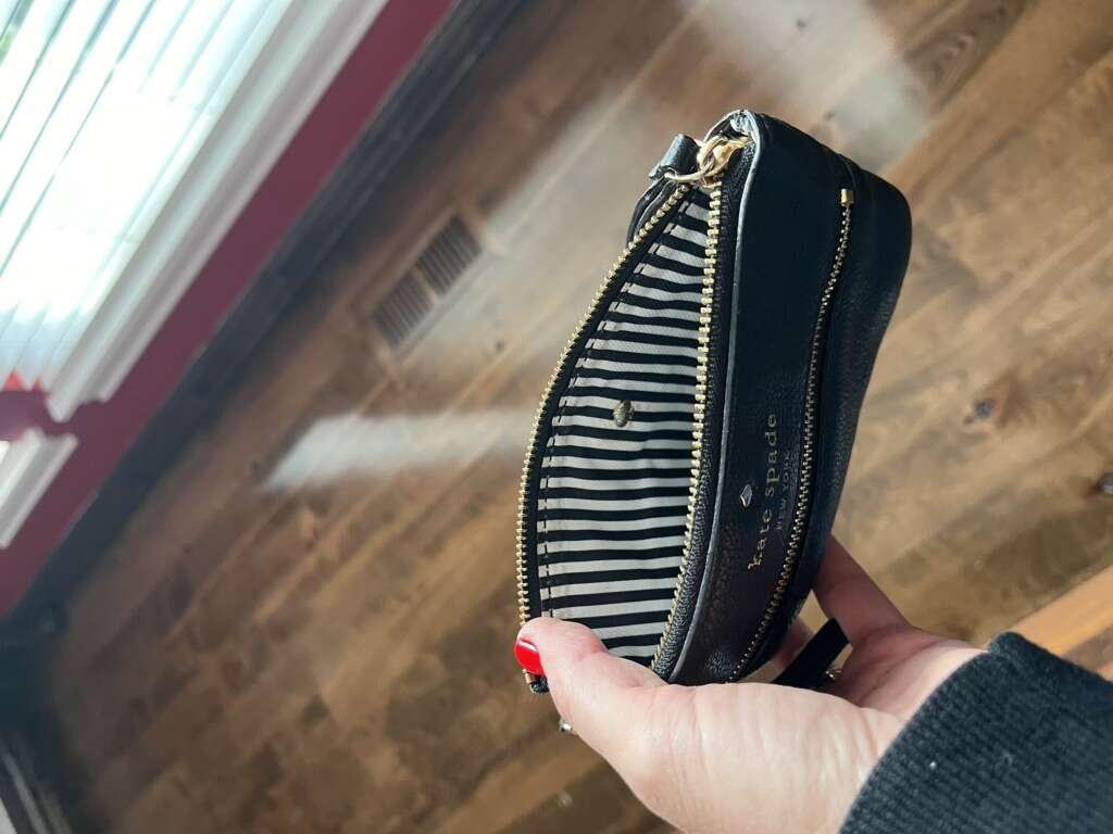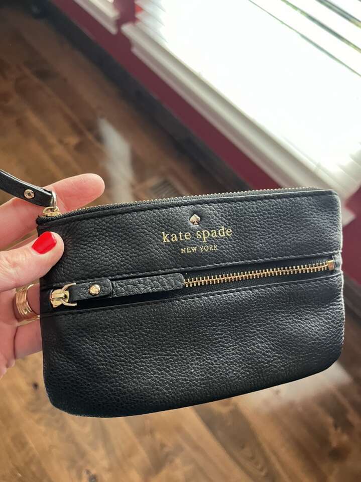 Kate Spade wrist wallet black with gold accents 7” X 4”