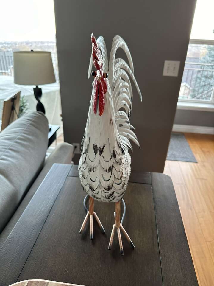 VenmoThis is a decorative 18 inch tall, metal rooster that would be perfect for a side table or decorating shelves
