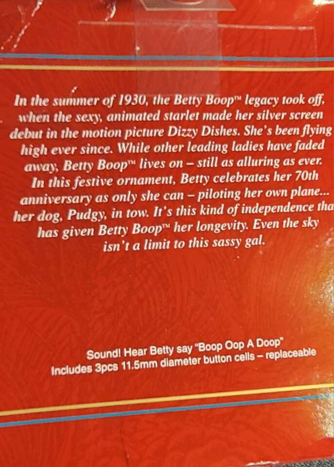 BETTY BOOP Perky Pilot TALKING Christmas Ornament Carlton Cards 1999 Airplane