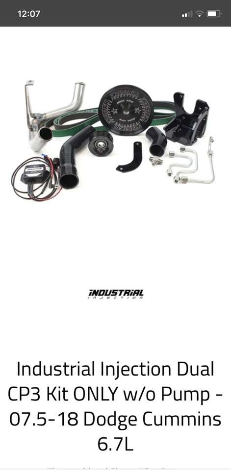 ZelleSelling my dual Cp3 kit with pump. Online it says they fit from 07.5-18 6.7l cummins, I had it on my 2009 6.7l Cummins. The kit and pump have less than 7,000 miles on it. that is me overshooting and about doubling what I honestly believe it has on it. The kit comes with everything as well as the second pump. These kits alone go for over 2,800 with a pump after tax. I am asking $1,650 which will save you over a 1,000 or more after taxes