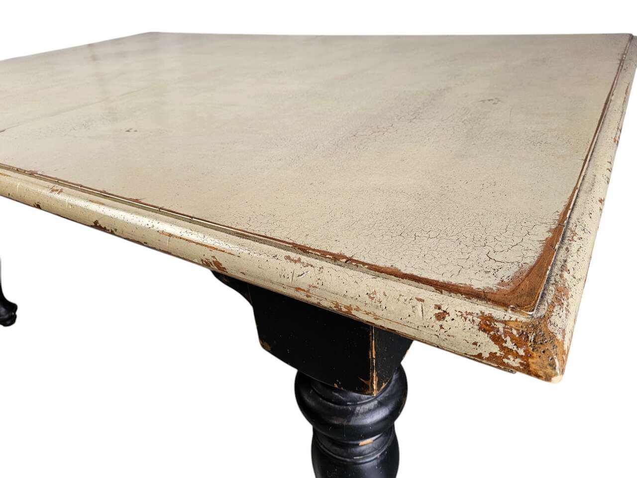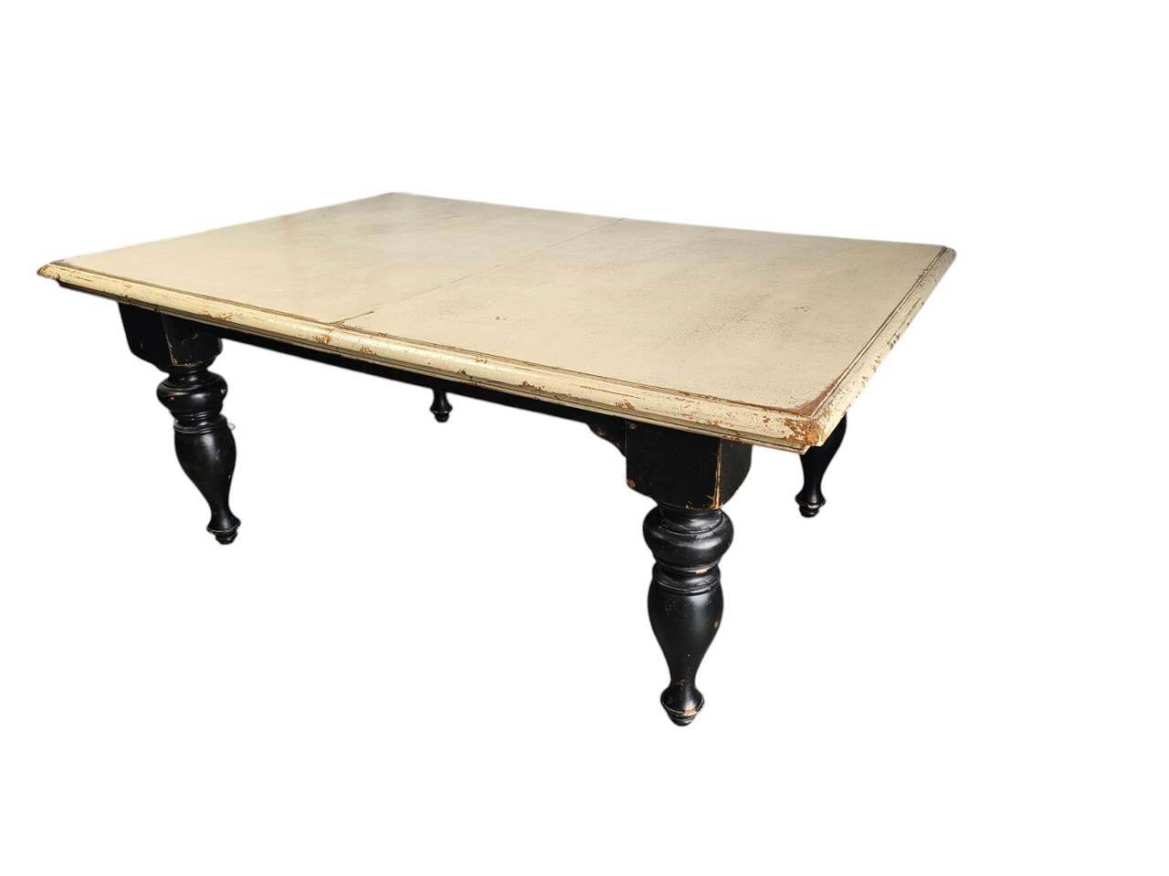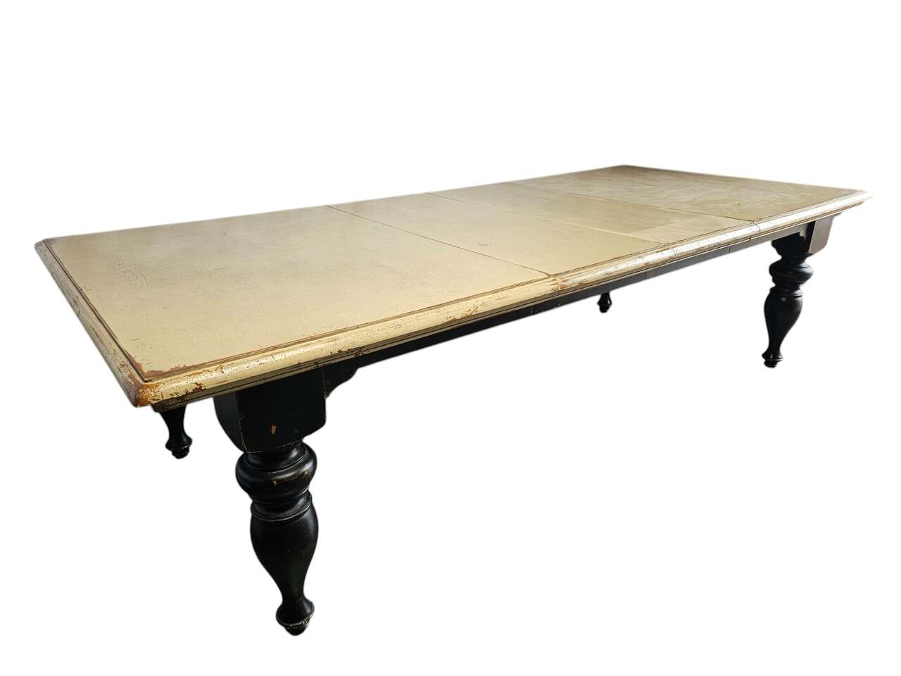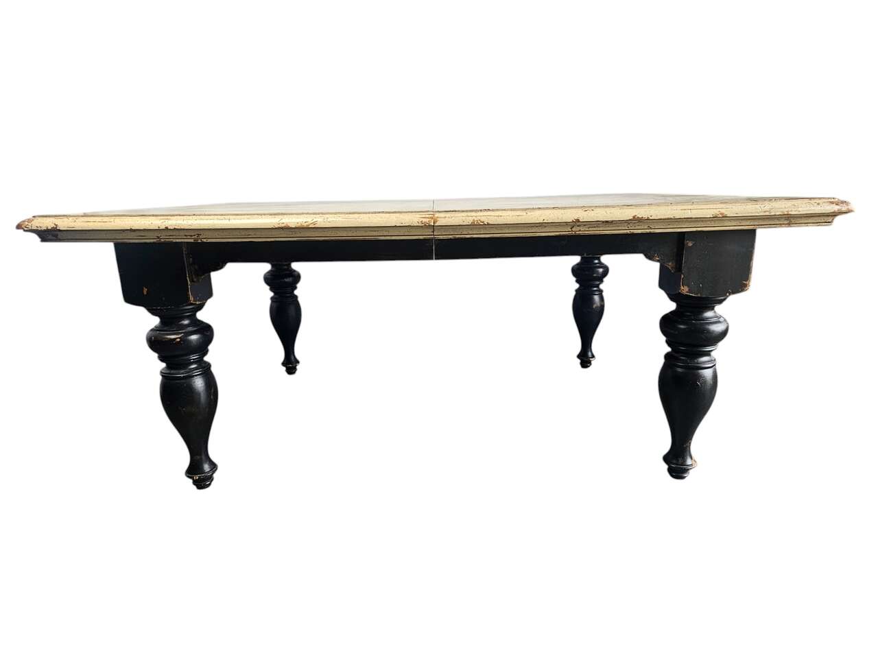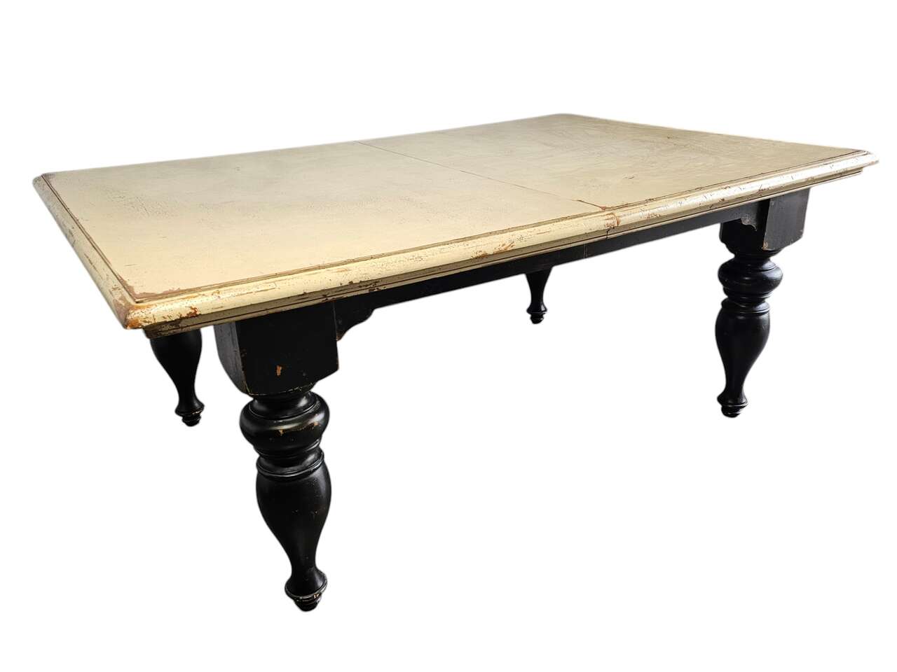 Condition: Pre-owned, in excellent. Beautifully distressed finish. It has two leaves to create a very large table.