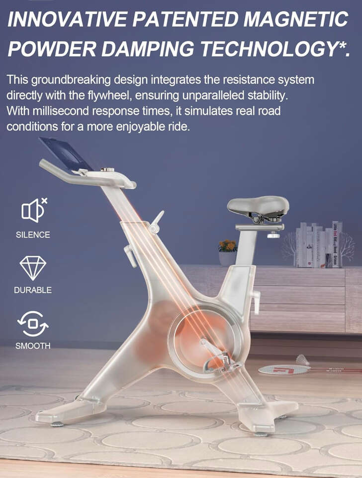Features & details - EMI INTELLIGENT MAGNETORESISTIVE SYSTEMDifferent from the traditional braking system using wool felt, this workout bike adopts innovative patented EMI Intelligent magnetic particle damping technology. This breakthrough design integrates the resistance system directly with the flywheel, which can respond in milliseconds, making the exercise process smoother. The resistance adjustment is smoother and can simulate more realistic road conditions, allowing you to enjoy a pleasant riding experience.