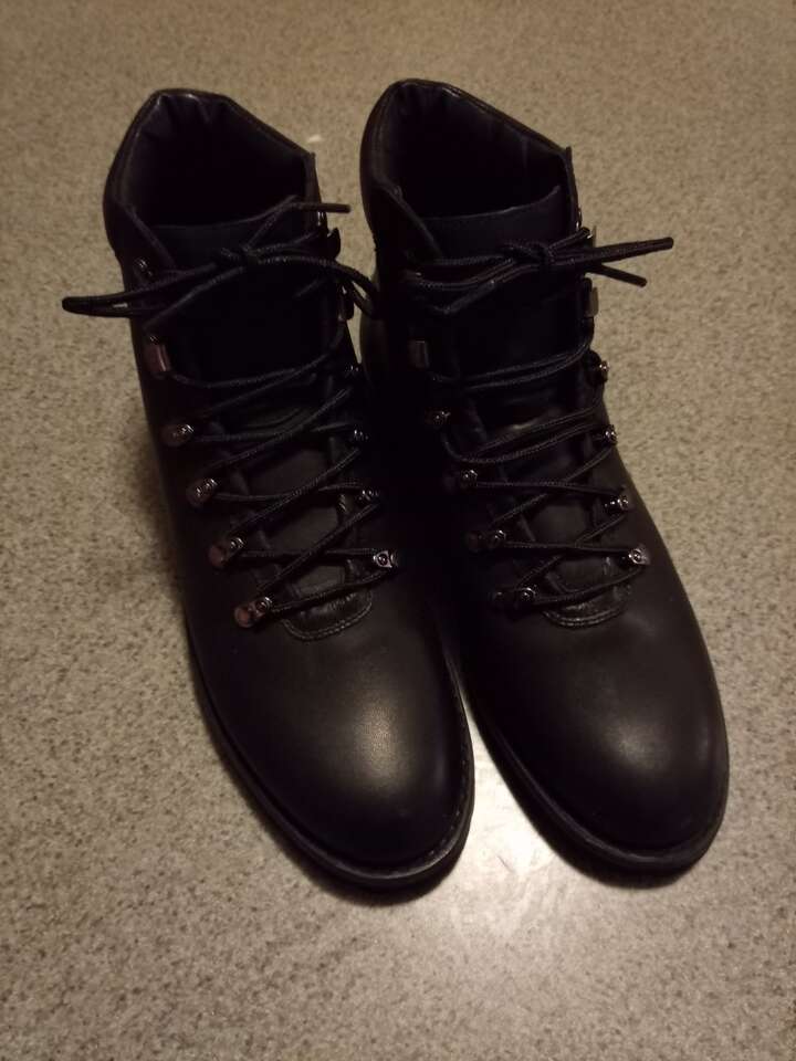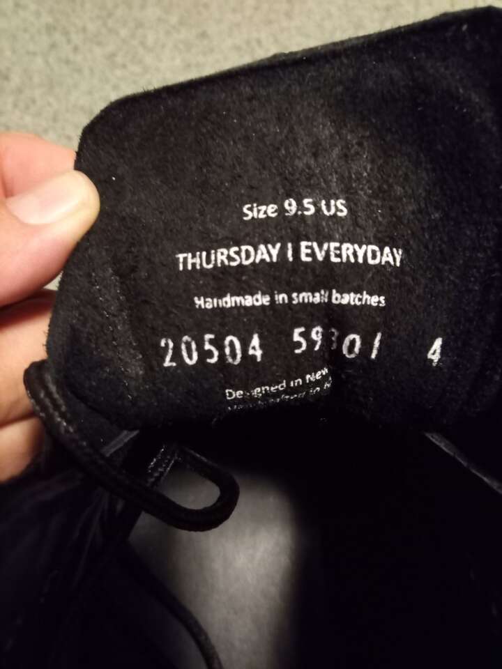 VenmoPrice Reduced Black Thursday Commander men's size 9.5 standard D width. These have the vibram lug sole with 360° Goodyear welt construction for water resistance and are completely re-soleable. Leather midsoles. Gusseted tongue, with padded collar. Full glove leather interior lining. Long-lasting Kevlar blend laces, with gunmetal speed pulley eyelets. New, never worn. They retail for $235 Smoke free home. Thursday recommends sizing down a half size from your true Brannock, or sneaker size. I usually wear a 9.5 in Thursday's, but these were a little snug on me when I tried them on. I suspect if you wear a 9.5 in sneakers, these would probably be about right for you. Cash or Venmo only.